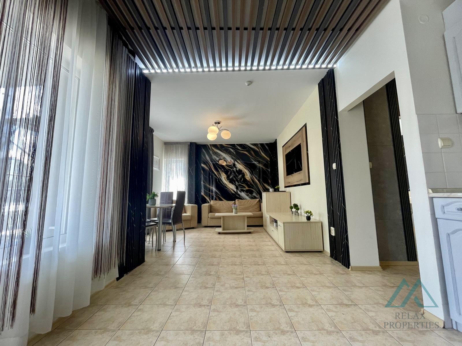Apartmán je kompletne zariadený moderným nábytkom a pripravený na okamžité užívanie, vhodný ako rekreačné bývanie alebo prenájom.
