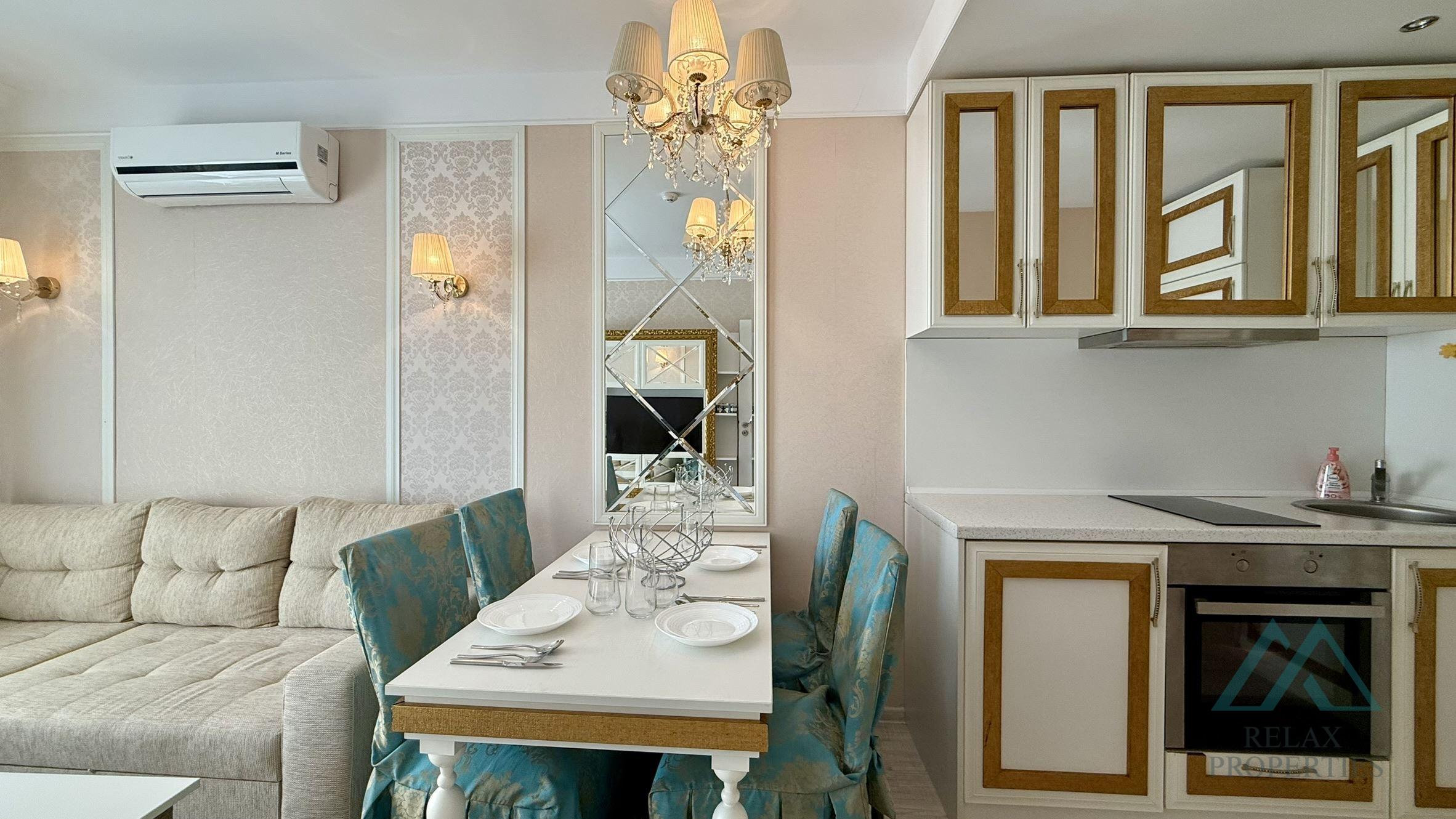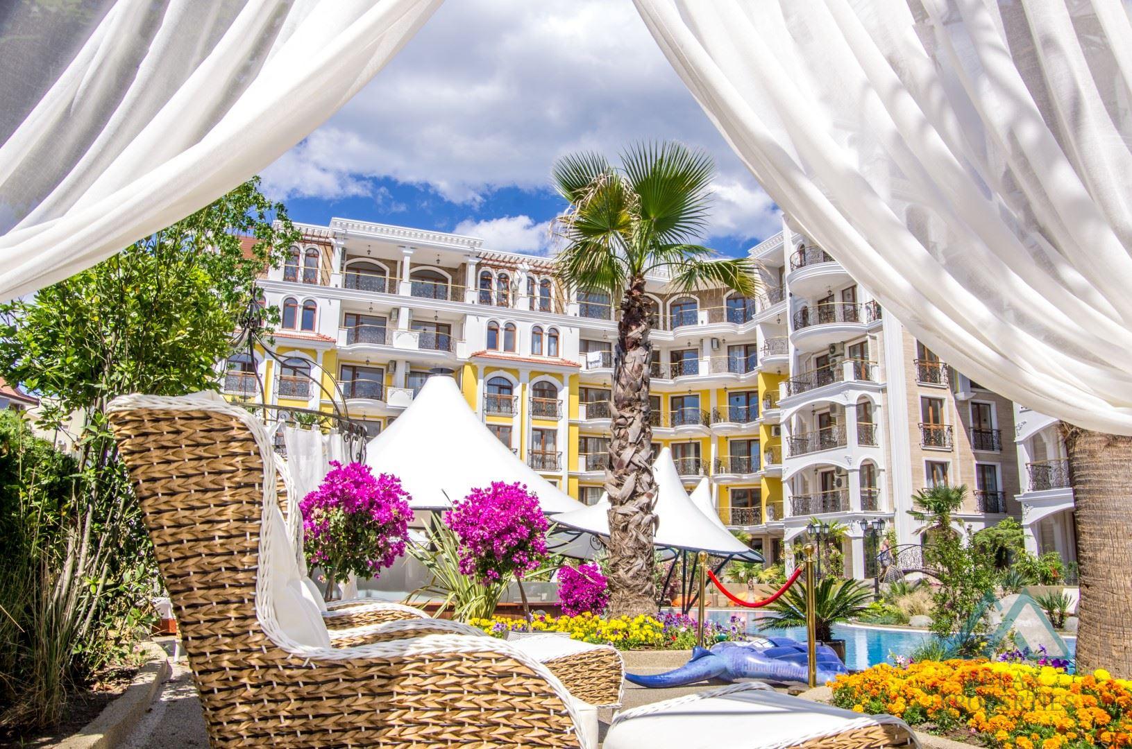 Tento exkluzívny celoročný komplex patrí medzi najobľúbenejšie a najvyhľadávanejšie v Sunny Beach vďaka svojmu unikátnemu dizajnu, luxusným službám a krásnym upraveným areálom. Apartmán je kompletne zariadený vo vysokom štandarde a pripravený na okamžité užívanie.