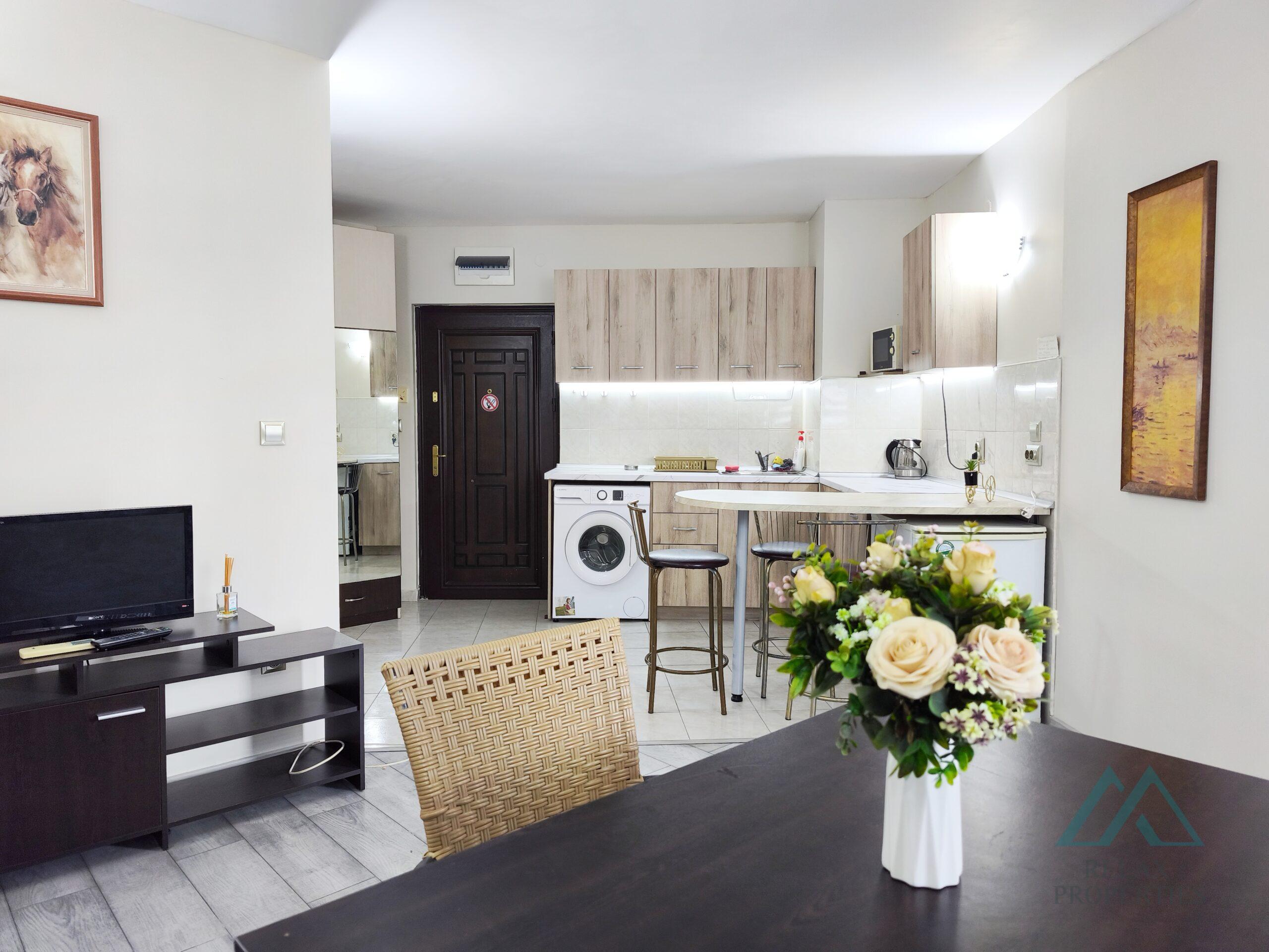 Ponúkame na predaj moderný 2-izbový apartmán v obľúbenom komplexe Semiramida Gardens, ktorý sa nachádza priamo v centre letoviska Sunny Beach (Slnečné pobrežie), len 400 metrov od mora. Apartmán sa nachádza na 3. poschodí a ponúka príjemný výhľad na okolie.