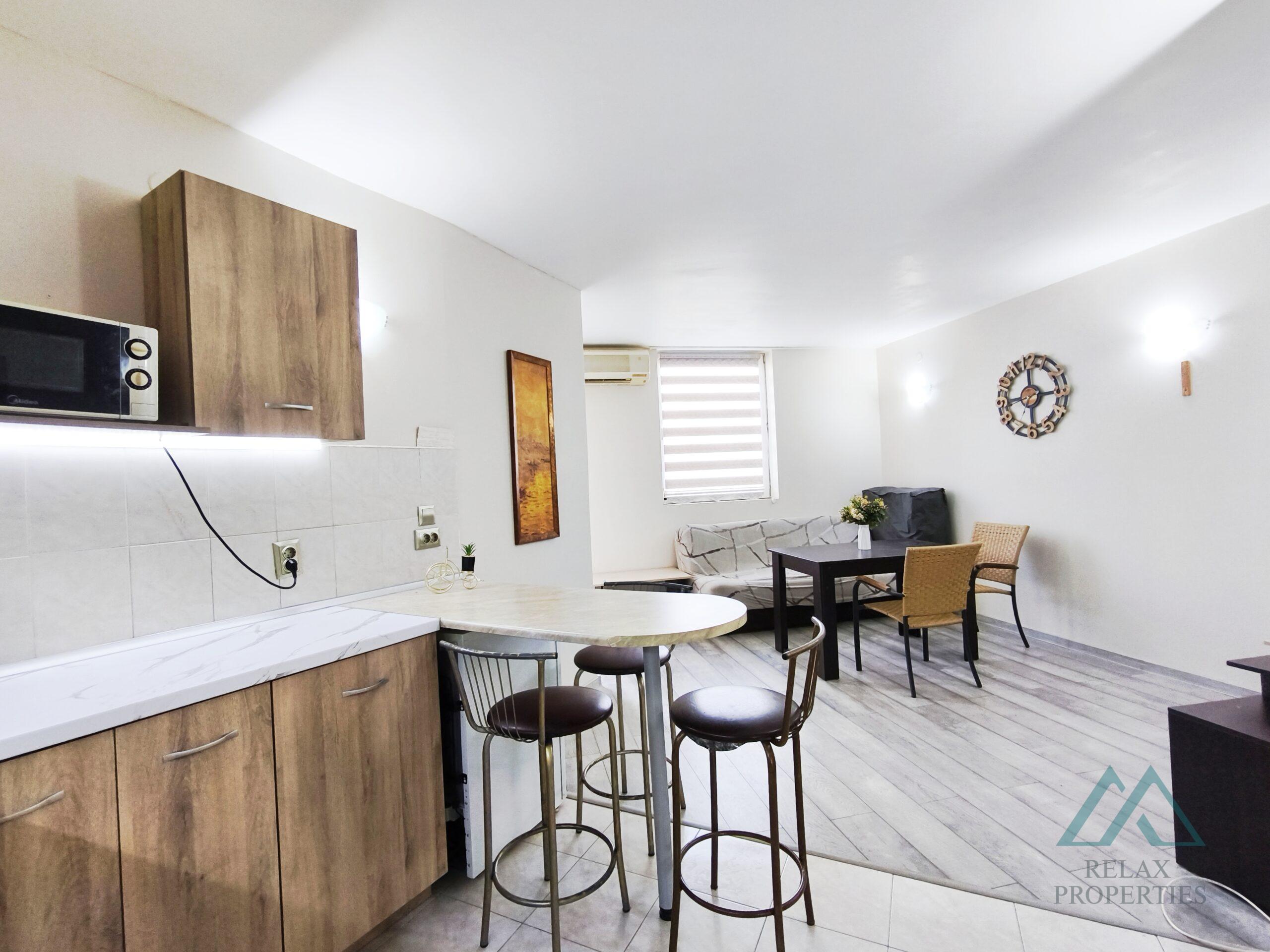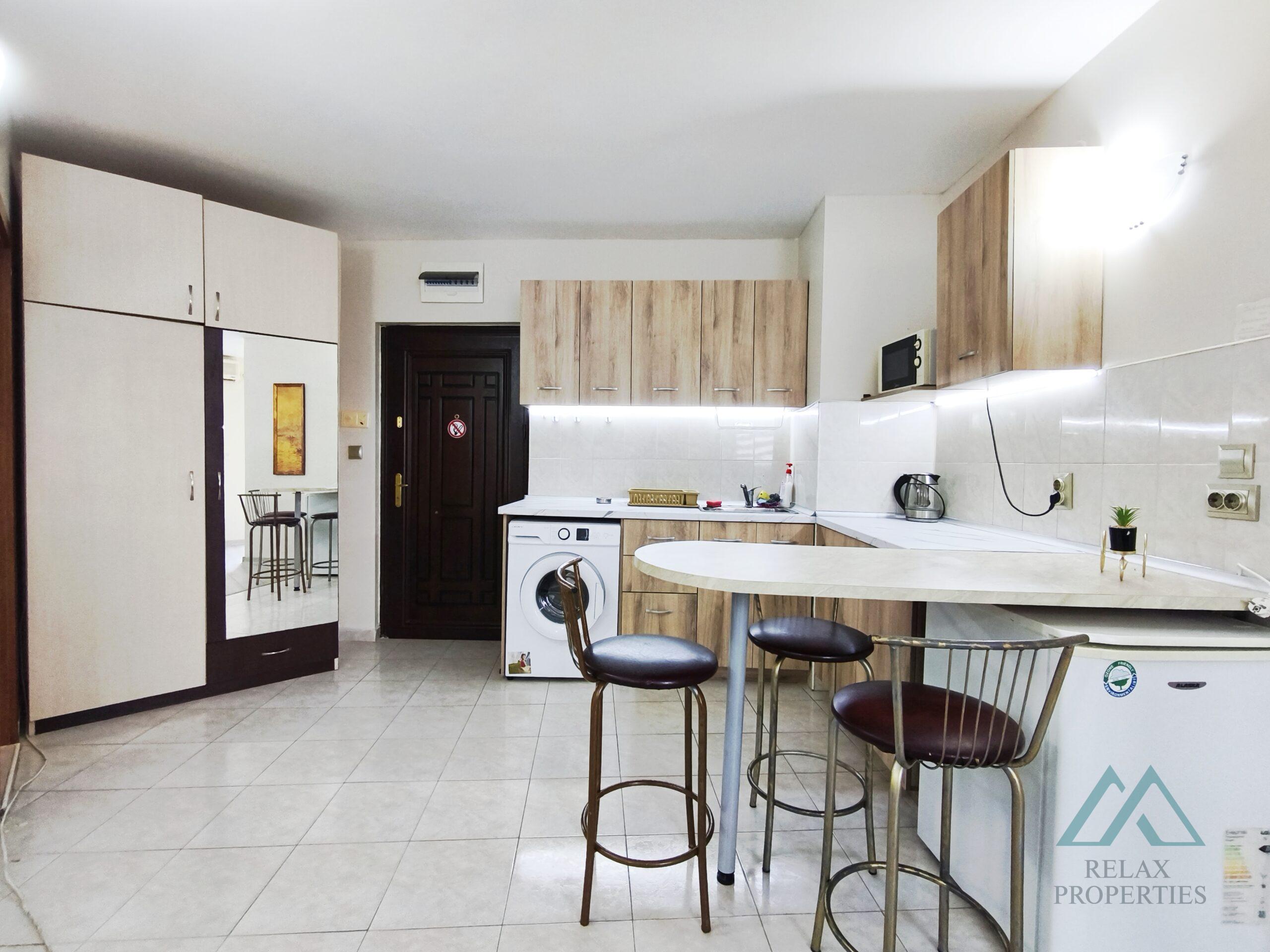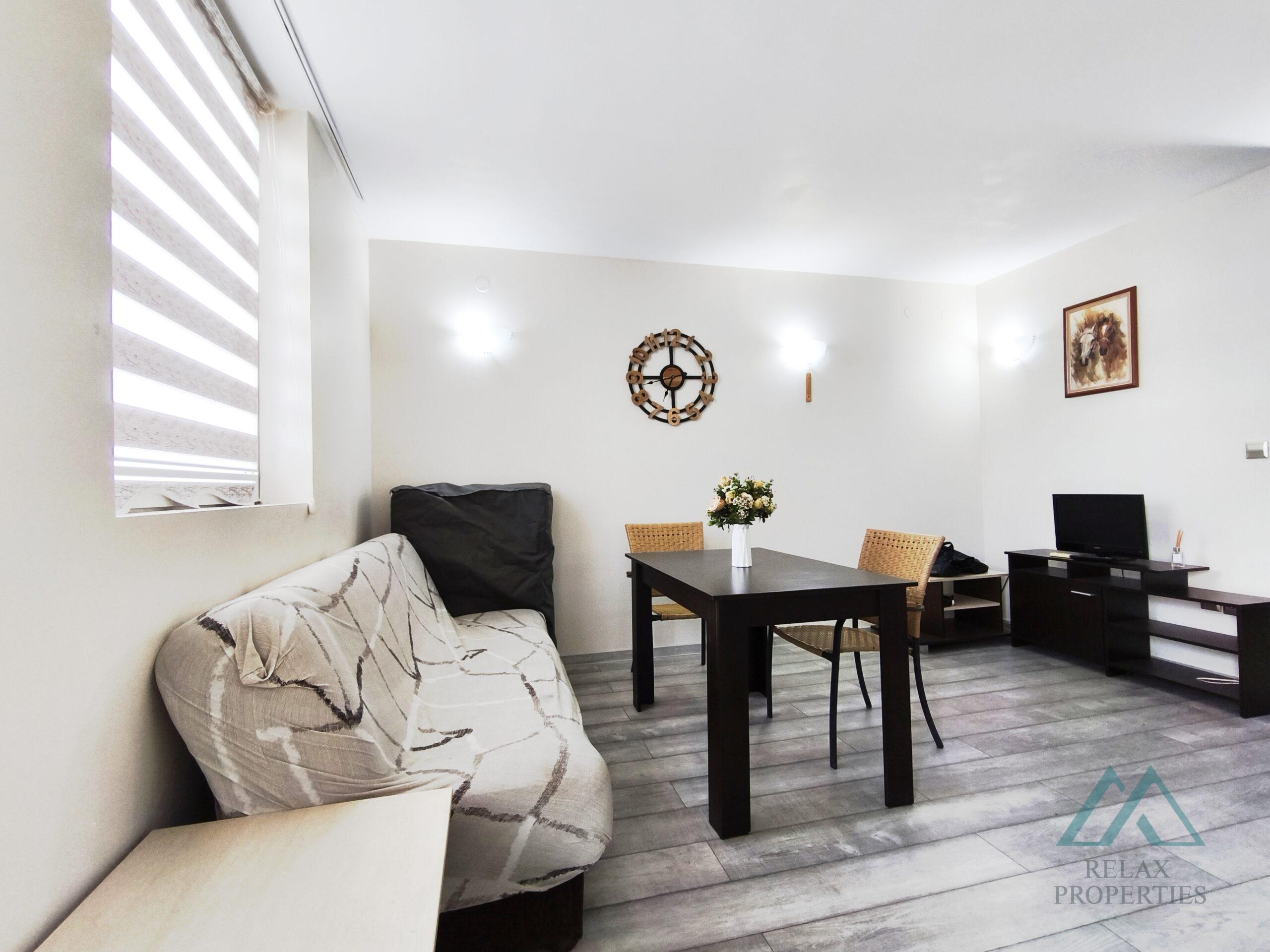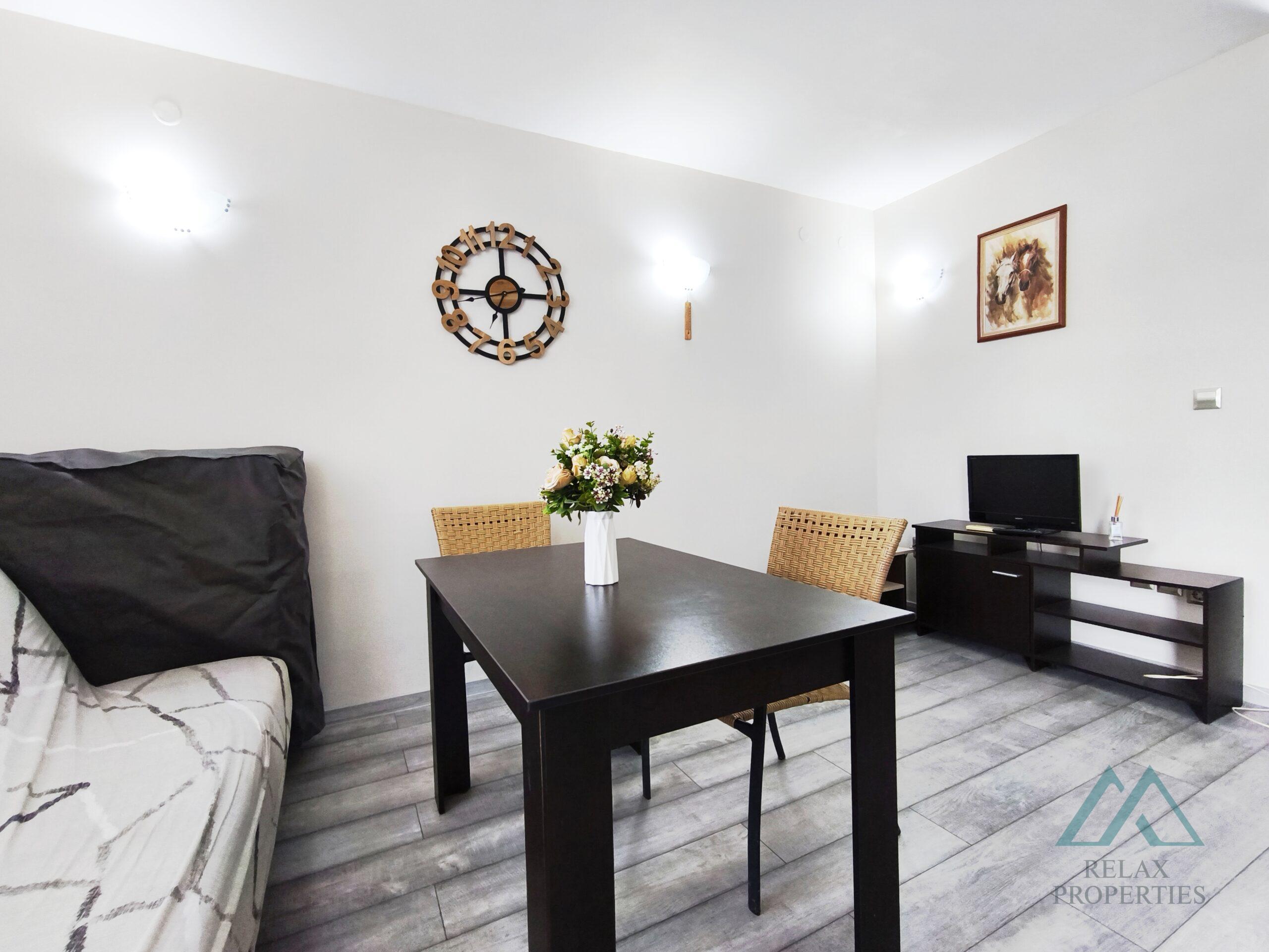 Popis nehnuteľnosti: Obývacia izba s otvorenou kuchyňou a jedálenskou časťou, Spálňa s dvomi samostatnými posteľami, Kúpeľňa s toaletou, sprchou, umývadlom a elektrickým bojlerom, Veľký balkón s otvoreným výhľadom na okolie, Klimatizácia, rozkladacia pohovka, plne vybavená kuchyňa.