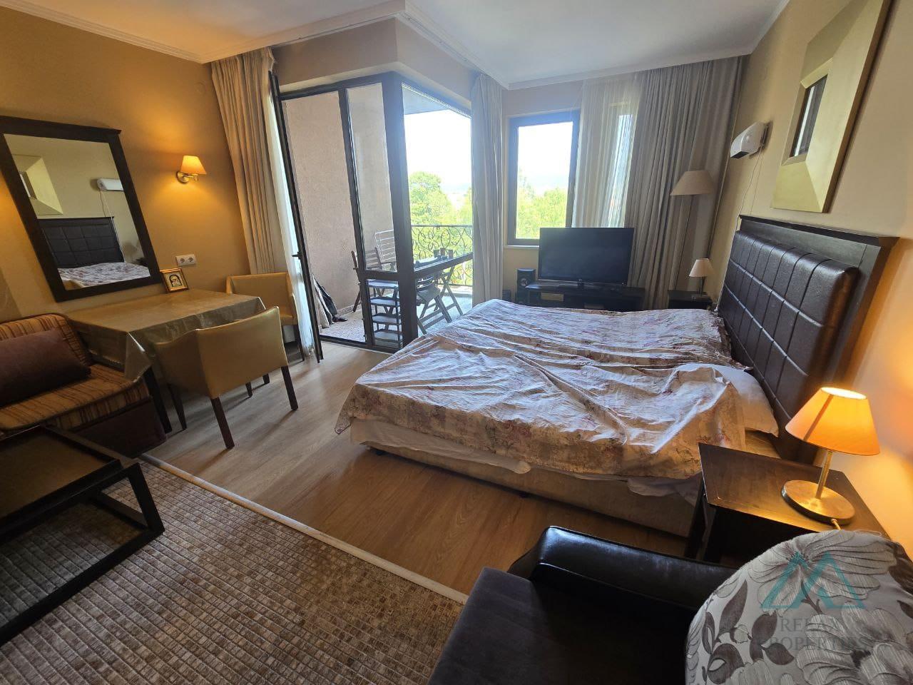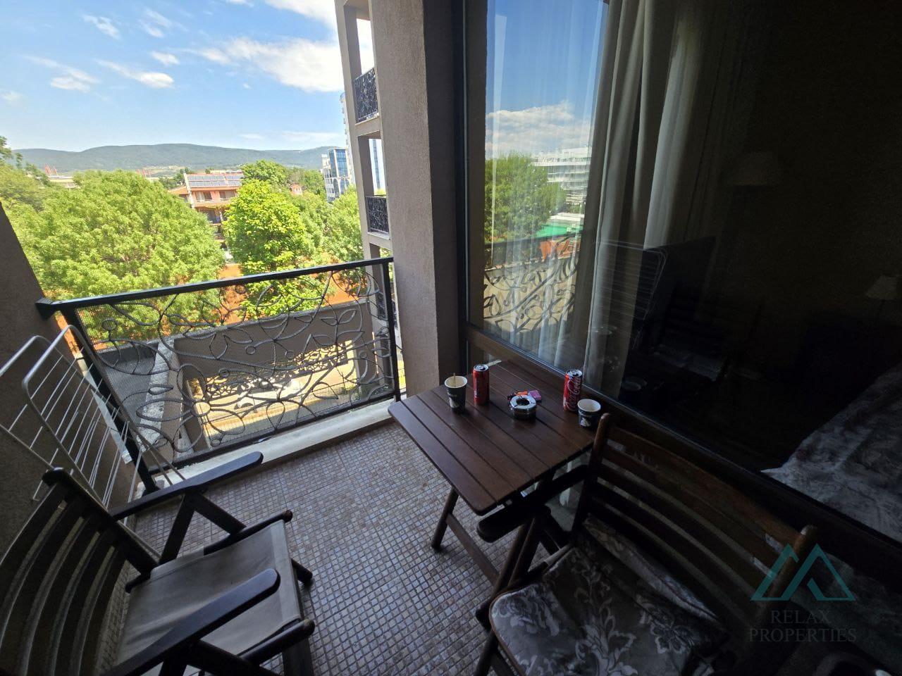 Priestranný apartmán má rozlohu 52 m2, nachádza na 2. poschodí (reálne ide o 3. poschodie), má krásny výhľad do zelene a na pohorie Stara Planina. Výhľad poskytuje maximálne súkromie.