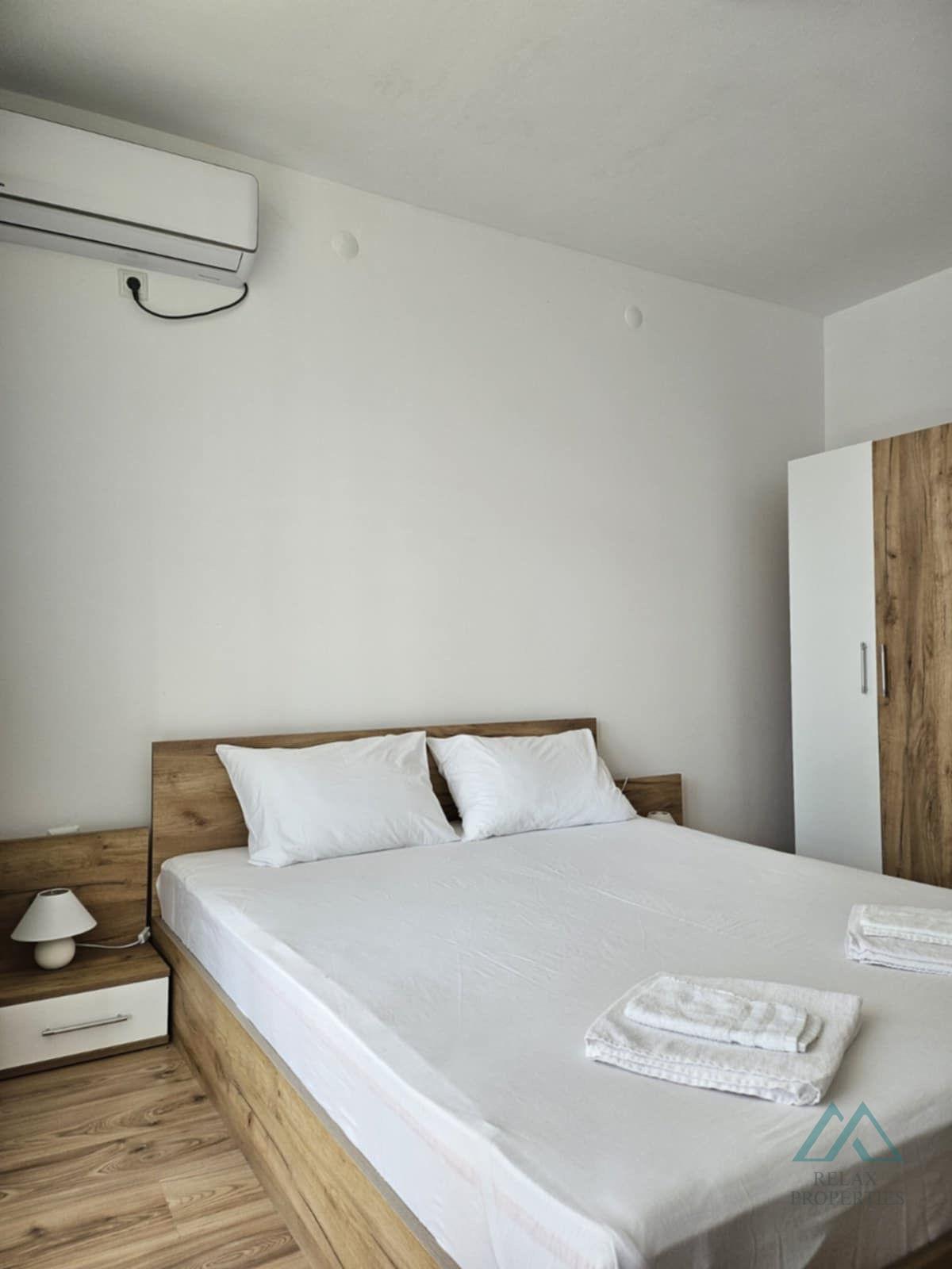 Apartmán má celkovú výmeru 67 m² a je situovaný na zvýšenom prízemí. Dispozične pozostáva z: chodby, obývacej časti s kuchyňou, samostatnej spálne, kúpeľne so sprchovým kútom a WC, terasy s miestom pre posedenie. Z apartmánu je čiastočný výhľad na more.
