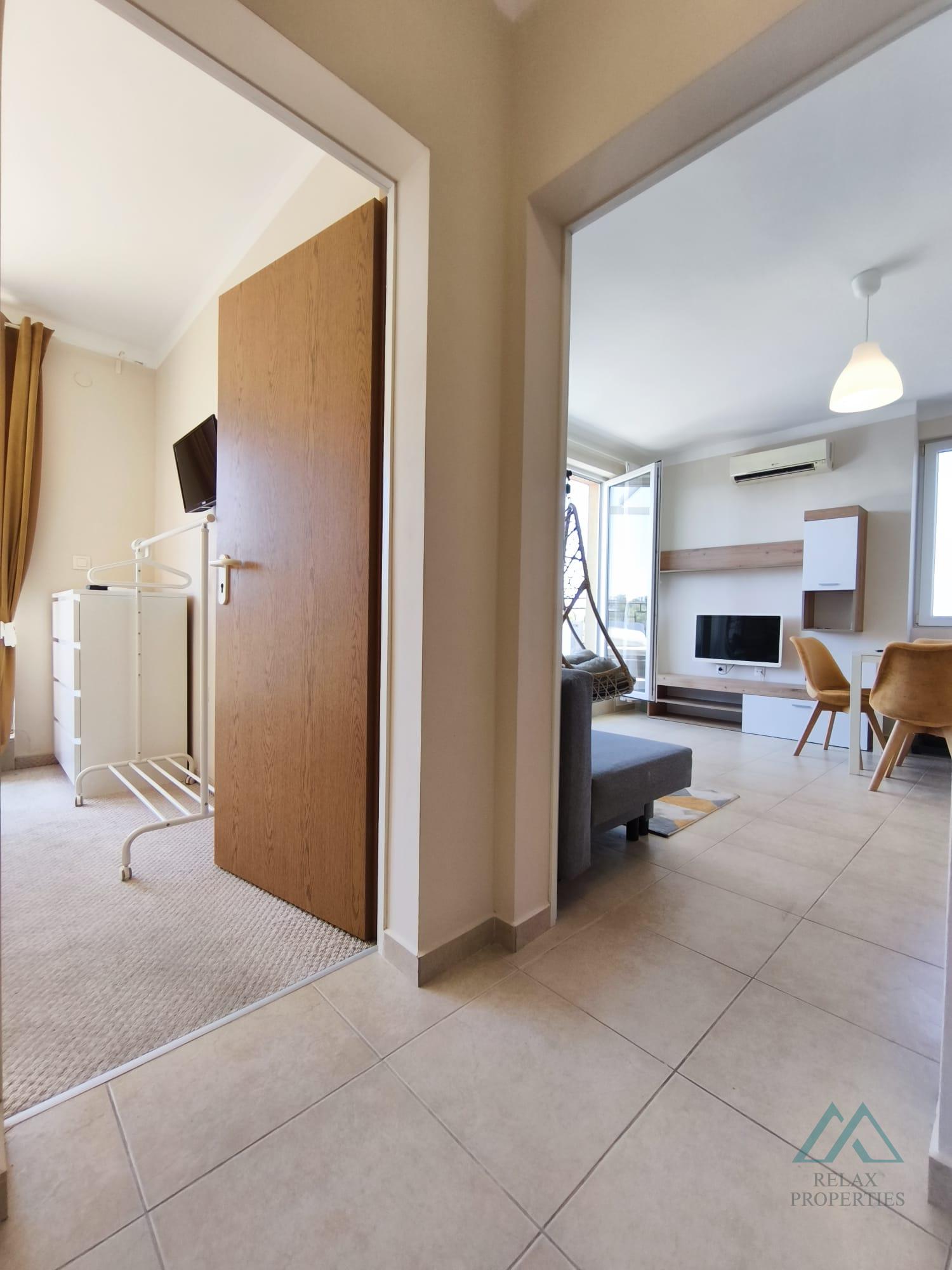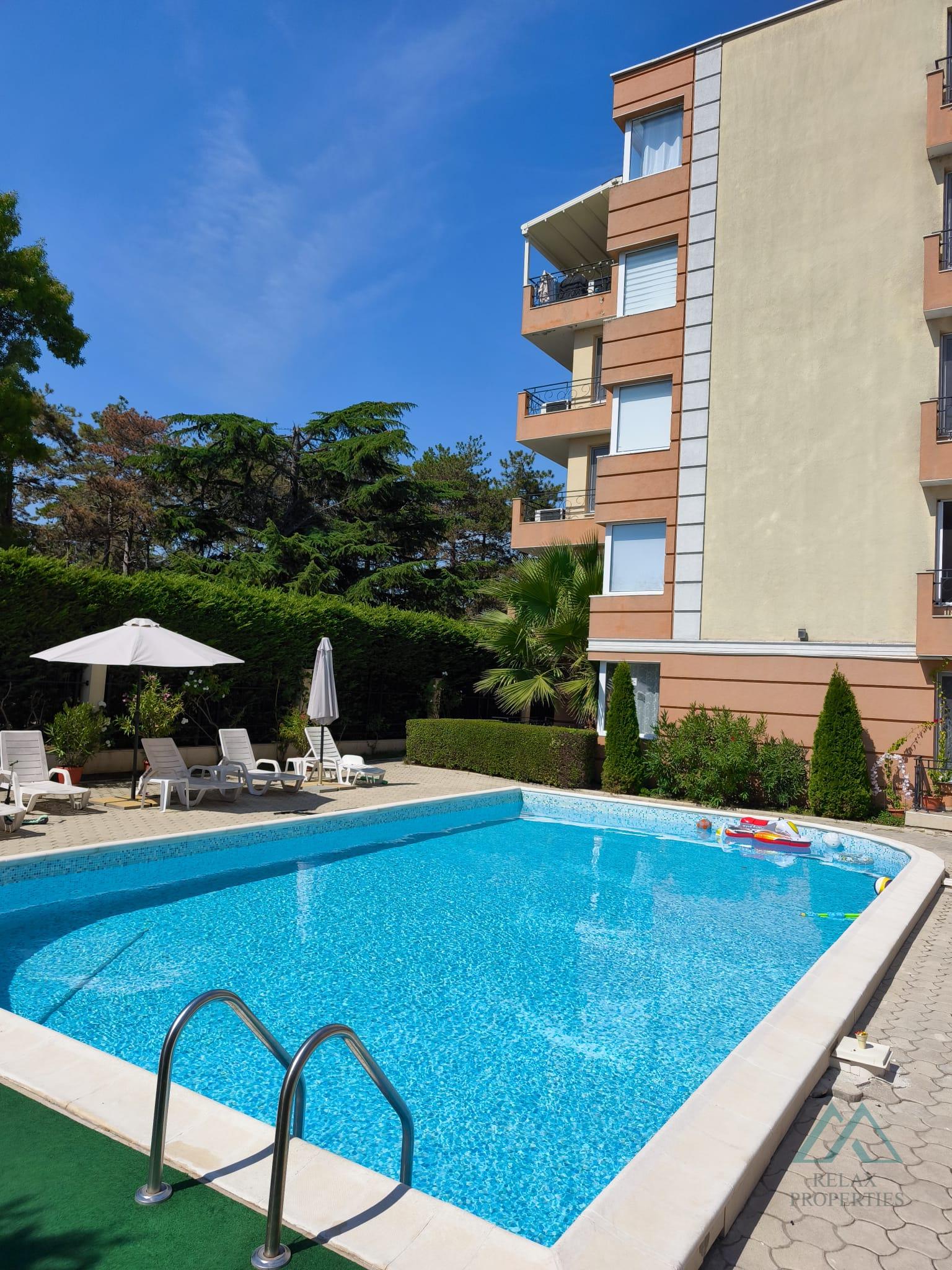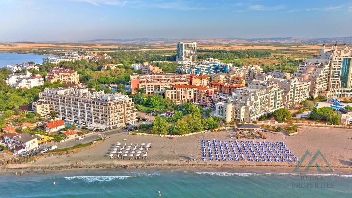 Ponúkame na predaj krásny 2-izbový apartmán v meste Pomorie, priamo oproti aquaparku a len 5 minút chôdze od troch pláží. Apartmán má dve čiastočné výhľady na more a nachádza sa v obľúbenom komplexe Pomorie Residence, ktorý je vhodný na osobné využitie aj ako investícia s vysokou návratnosťou vďaka overenému záujmu na platforme Booking.