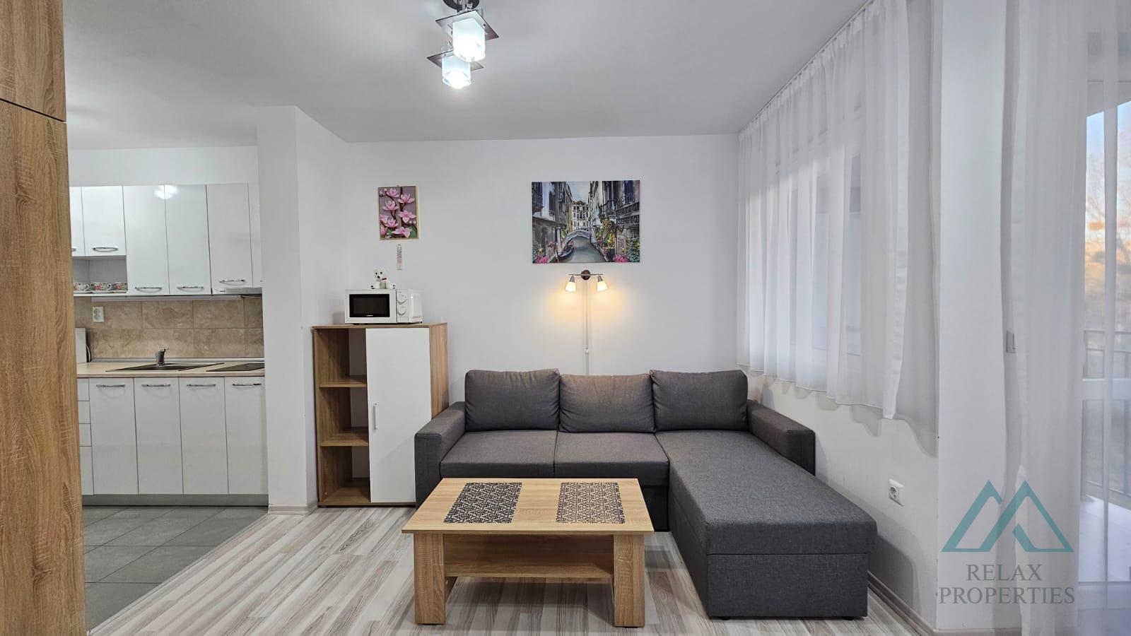 Dispozícia: vstupná chodba, priestranná obývacia miestnosť s kuchynským kútom, kúpeľňa so sprchovacím kútom, terasa s výhľadom na park.