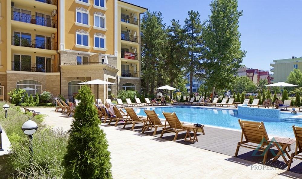 Certifikovaná realitná kancelária Relax Properties vám ponúka na predaj priestranné zariadené štúdio s výhľadom na bazén v obľúbenom sezónnom 4* komplexe Palazzo, ktorý sa nachádza na Slnečnom pobreží v Bulharsku, len 200 metrov od mora a známej pláže Cacao Beach.