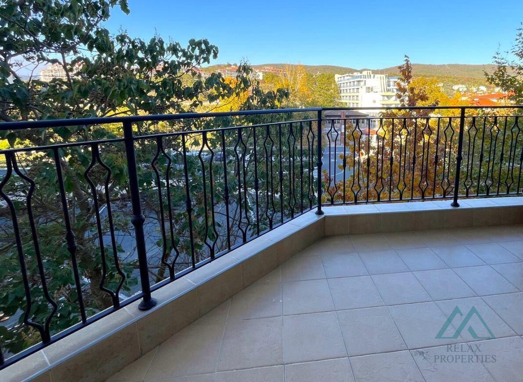 K apartmánu patrí veľká terasa, ideálna na oddych, stolovanie či relax pri pohľade do pokojnej časti zelene a na pohorie Stara Planina.