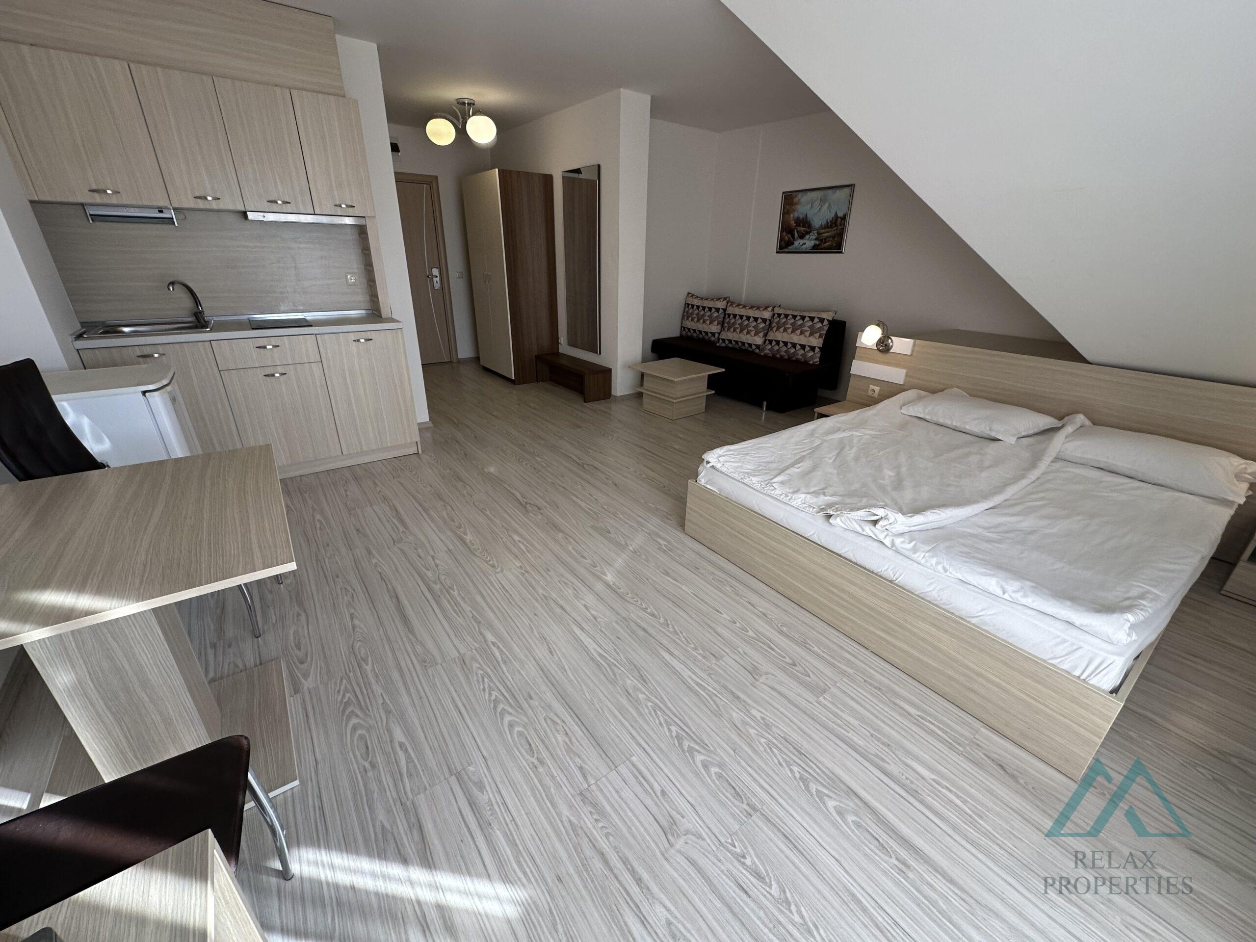 Certifikovaná realitná kancelária Relax Properties vám ponúka na predaj veľmi priestranné, kompletne zariadené štúdio s rozlohou 55 m², ktoré sa nachádza v modernom a vyhľadávanom komplexe Tarsis Club & SPA v letovisku Slnečné pobrežie, Bulharsko.