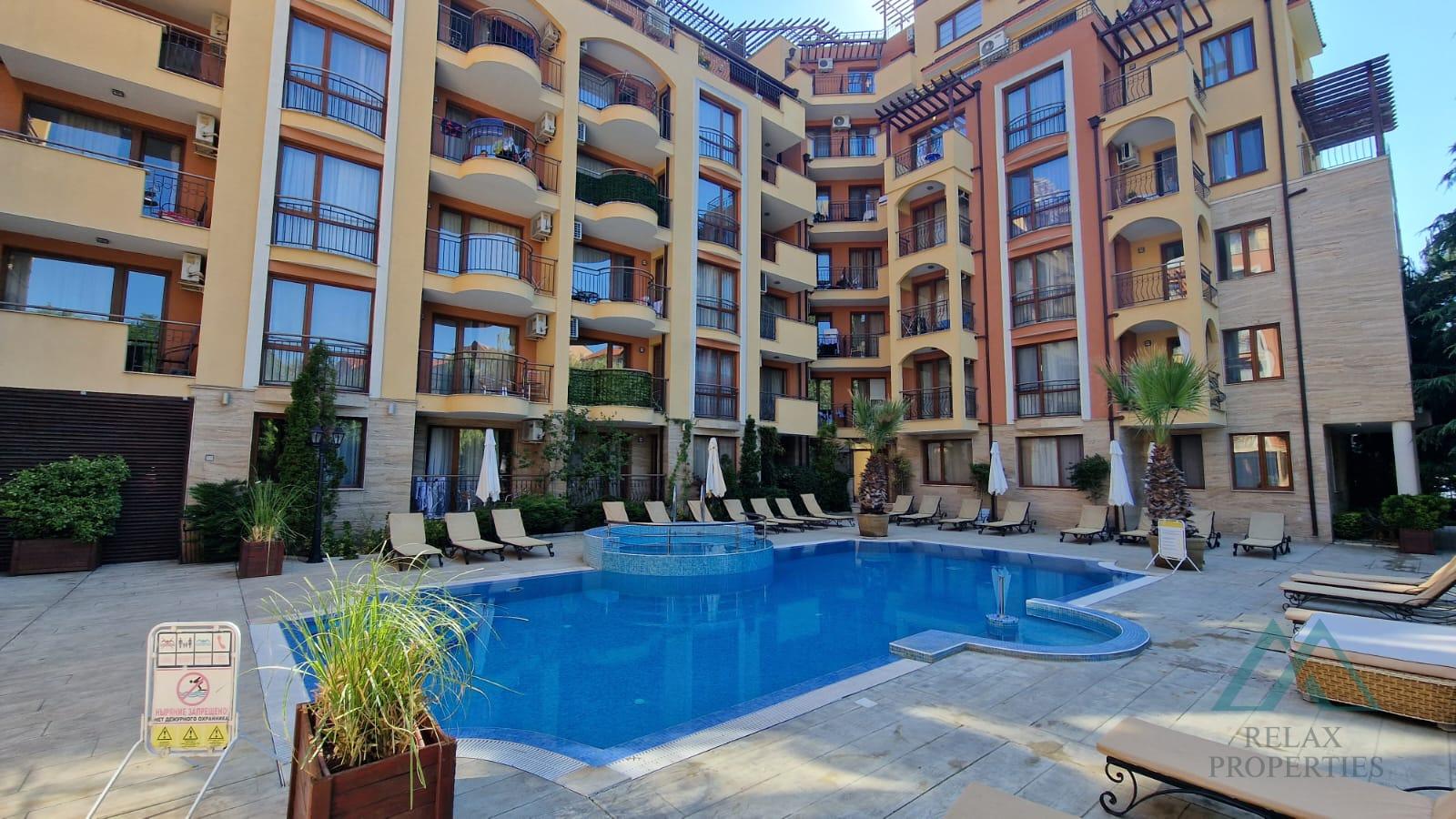 Certifikovaná realitná kancelária Relax Properties vám ponúka na predaj útulné a kompletne zariadené štúdio s výhľadom na bazén v obľúbenom celoročnom komplexe Harmony Suites 1 na Slnečnom pobreží v Bulharsku, len 700 metrov od mora.